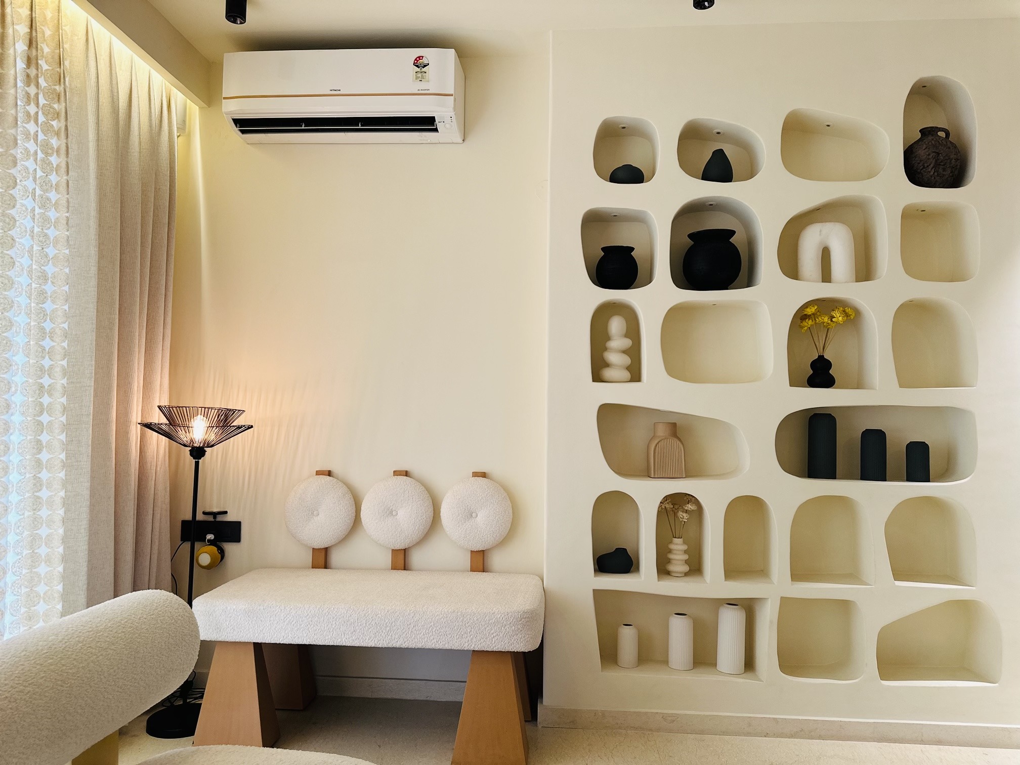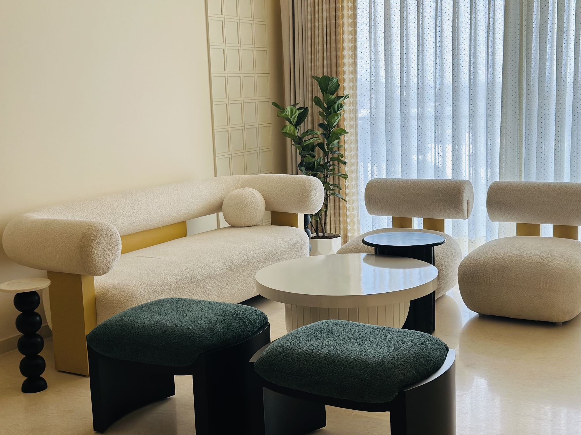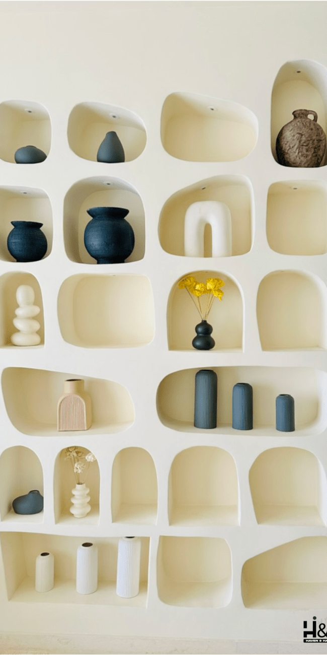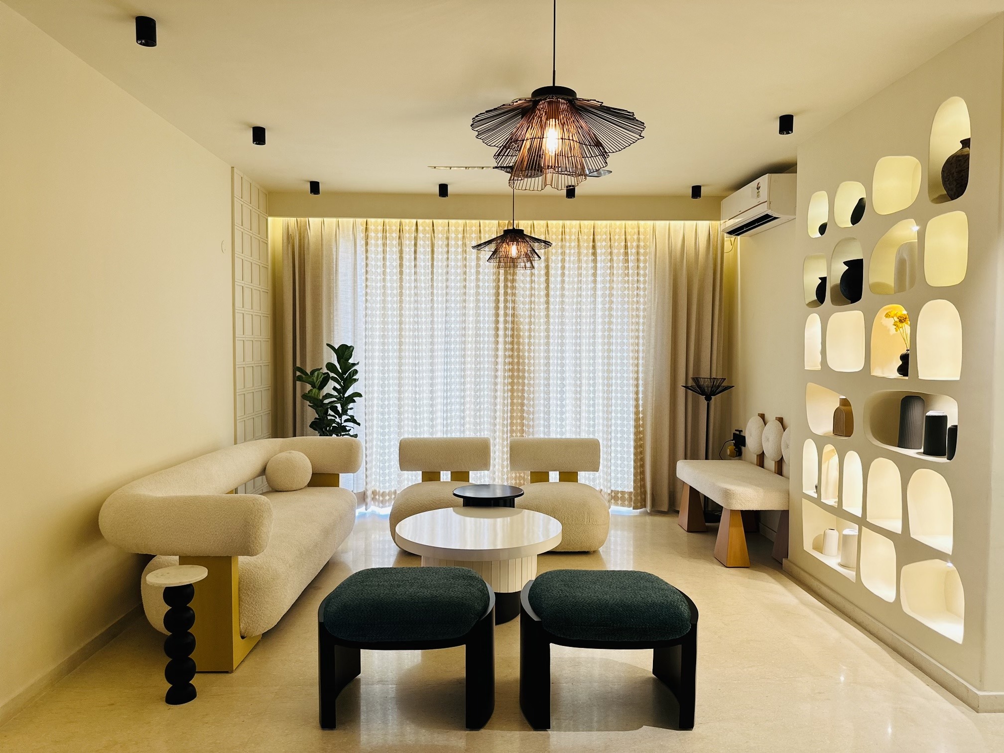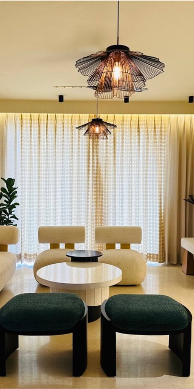 This thoughtfully curated residence is a seamless blend of art, comfort, and character. For example, designed with a modern Japandi aesthetic, the space features soft arches, custom murals, natural textures and a warm palette that brings every corner to life. From conceptualizing, to custom furniture and décor, every detail has been designed to tell a story.